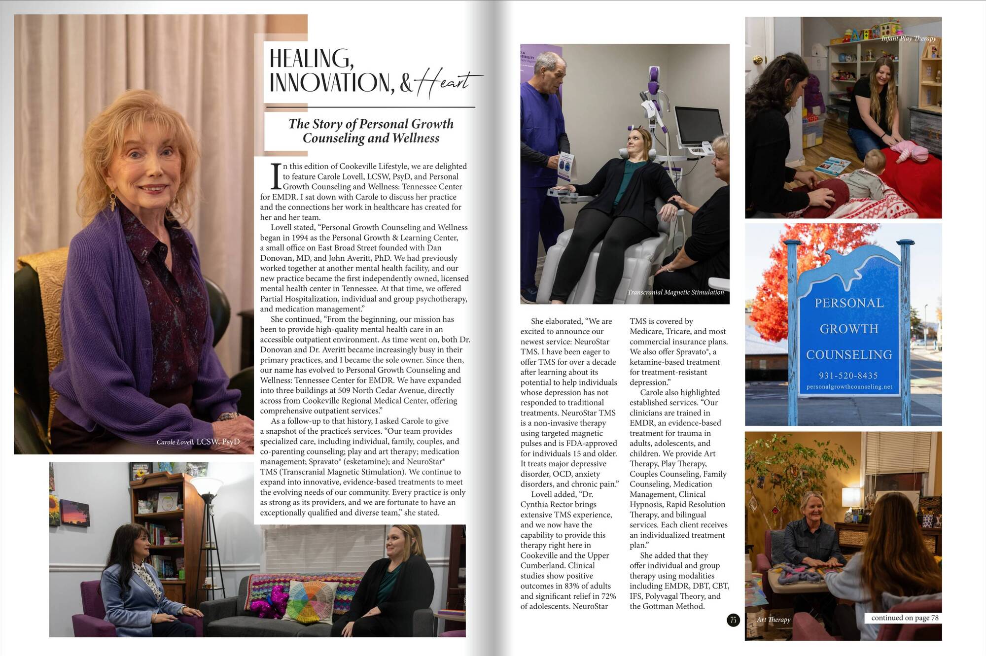 We are so grateful to have been featured in Cookeville Lifestyles! It was a wonderful opportunity to share our passion for mental health with a wider audience. Take a look at the following feature to get a better sense of our heart for this work and the tools we use to help clients navigate life’s ups and downs.